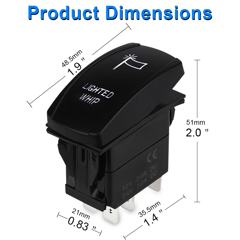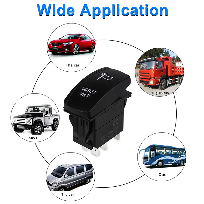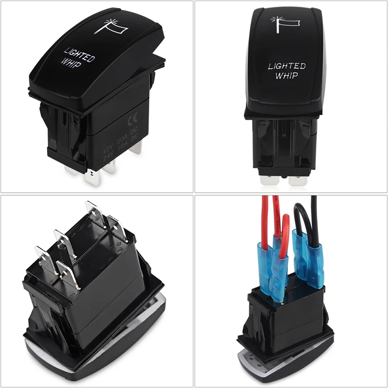Input voltage: DC12V-24V5 Pin on-off Rocker Switch is SPST designed(Single pole single throw) switch, it come with A Set of Jumper Wires,simple to install, can easily turn on/off the lights(Not Including Holder)